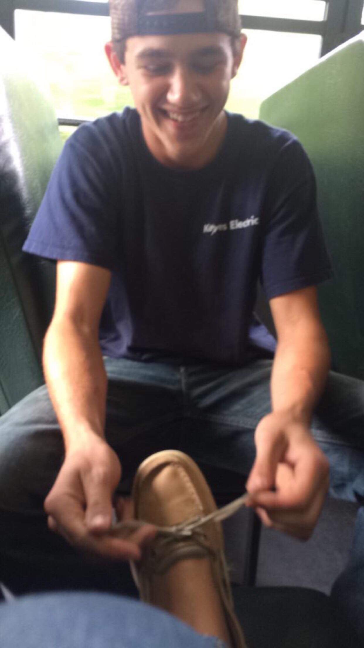Then as I pulled into Stop & Shop today my heart nearly stopped. There in the parking lot in front of me was a young man that could have been Connor’s twin. Blue t-shirt, faded jeans, half-tied Chippewa Boots and a Black Fox Hat.
